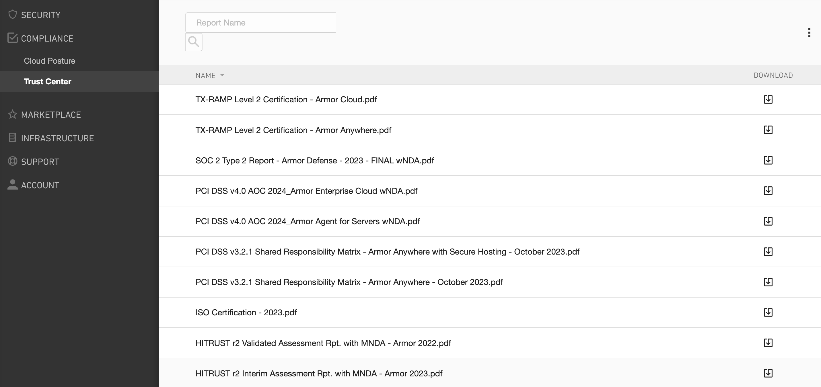 In the legacy Armor Management Portal (AMP): https://portal.armor.com/compliance/trust-center