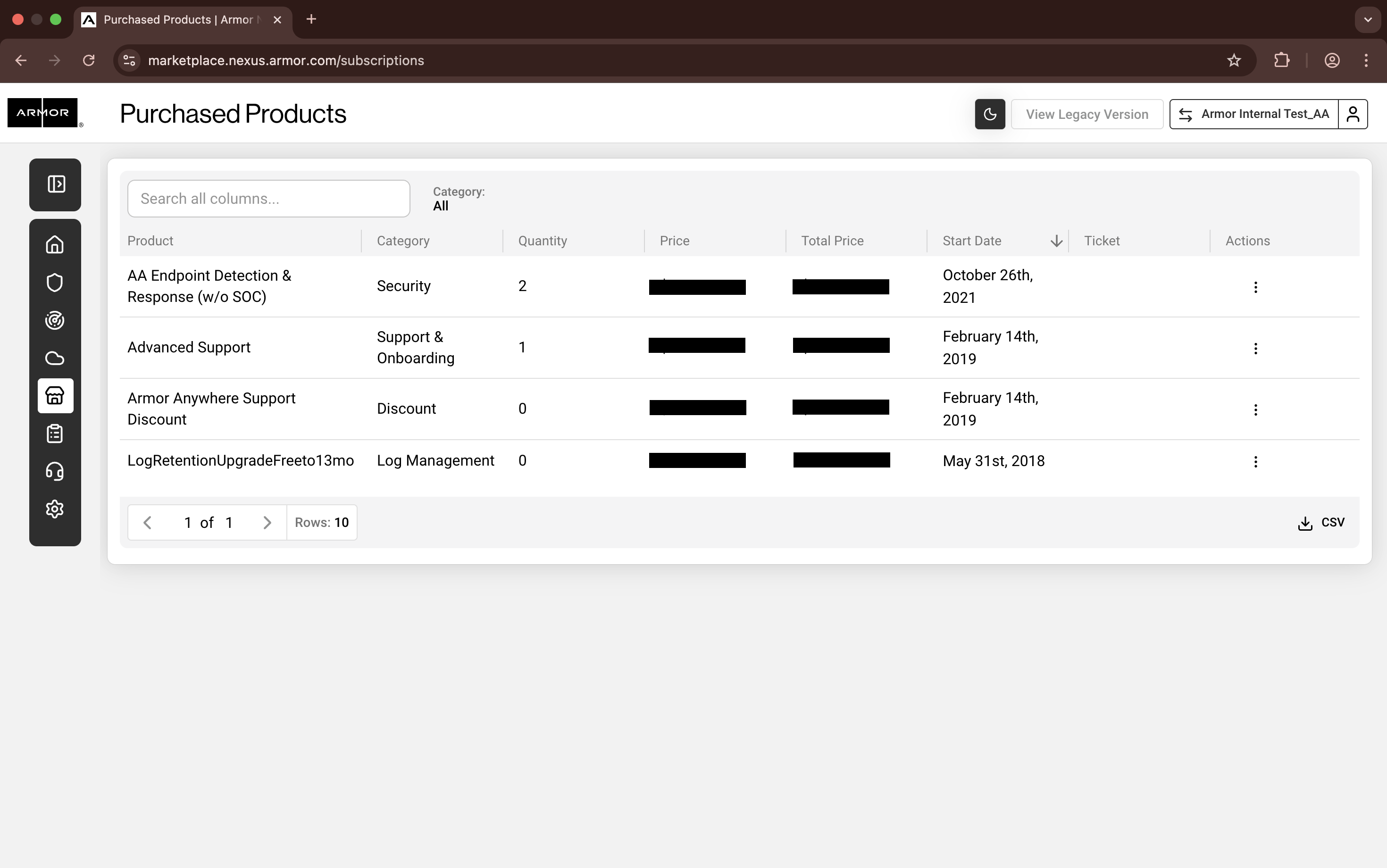 In the Armor Management Portal (AMP), in the left-side navigation, click Marketplace.