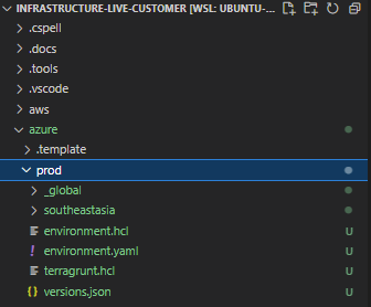 Once you have run the bootstrap script successfully, you will be able to see the /azure/<ENVIRONMENT> folder generated