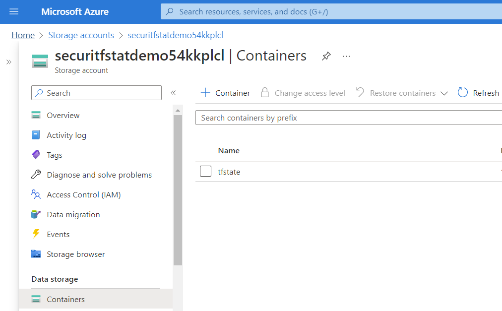 You will also be able to see the remote state called tfstate created by visiting Storage accounts in the Azure Portal