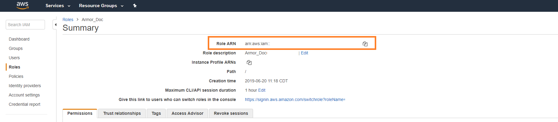 Under Summary, copy the Role ARN information.
