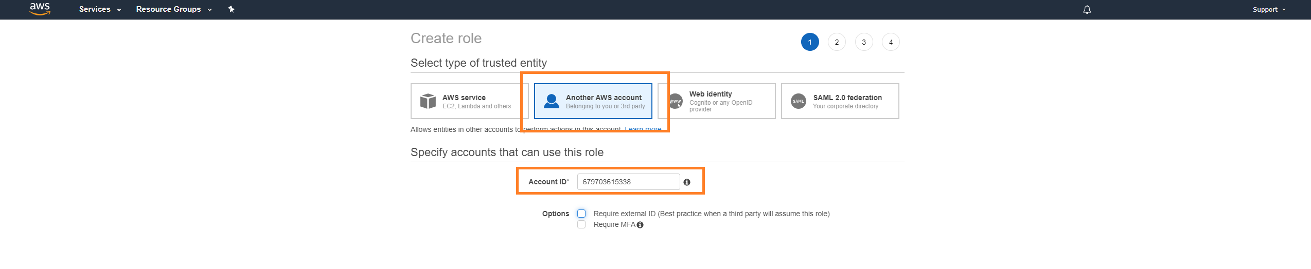 In Account ID, enter 679703615338.