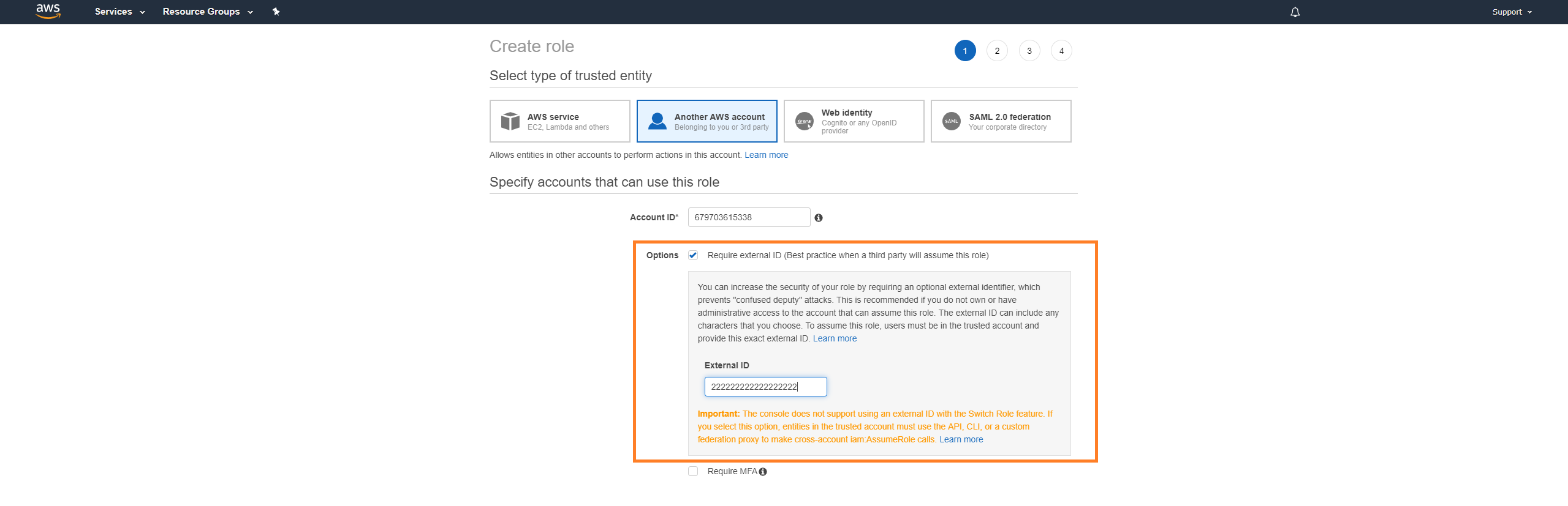Do not mark Require MFA.