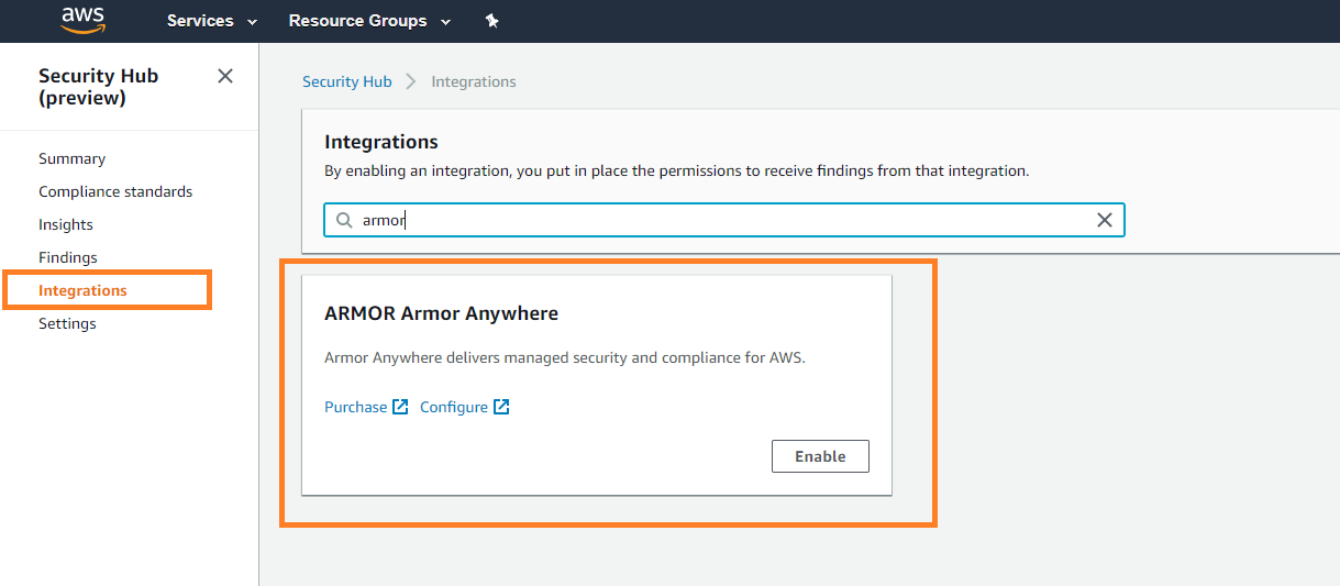 You can use these instructions to sync your AWS account with your Nexus / AMP account. Specifically, this action will sync your account with AWS Security Hub where Armor will send security updates.
