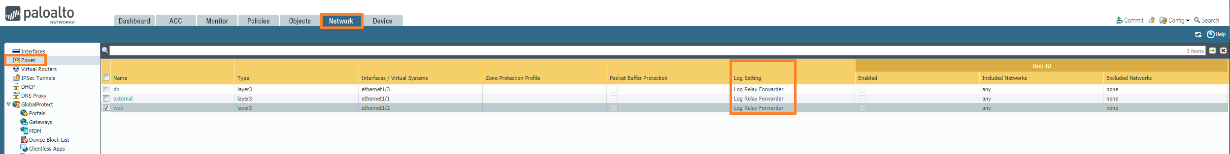 Select Network, then select Zones.
