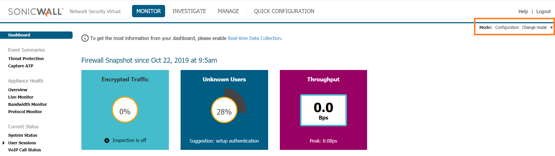 Review the top right corner of the screen, and confirm that Mode is set to Configuration.