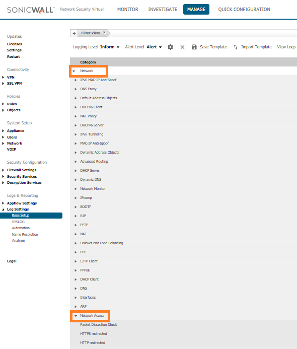 Under Logs & Reporting, click Log Settings, then click Base Setup.