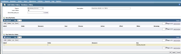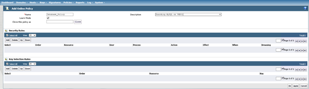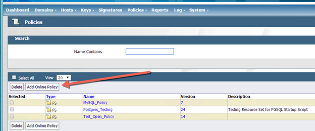 Click Add Online Policy, as shown below. Please note, the appliance will not let you create a policy until you first create a key.