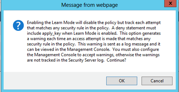 Mark the Learn Mode box, review the message in the pop-up window, and then click OK in the pop-up window.