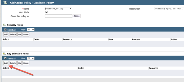 Under Key Selection Rules, click Add. This is the production key that will be used to encrypt and decrypt data being guarded by this policy.