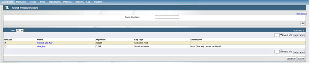 Under Selected, mark the button that corresponds to newly created production key, and then Select Key.