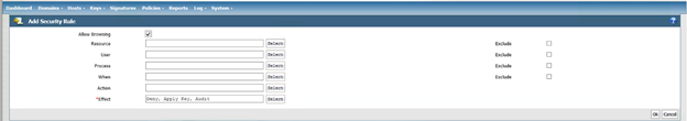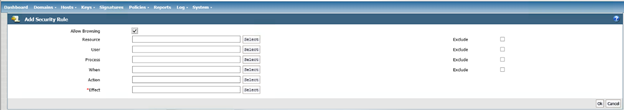 In the Learn Mode, a deny statement in a rule becomes a permit. This means that any activity that would have typically been denied by a policy rule is instead permitted and logged. In order to capture these logs in the DSM, a specific catch-all rule with a deny statement will need to be added at the bottom of every rule set. The DSM logs will then allow you to analyze and determine which authorized users and processes are trying to access a GuardPoint. With this information, you can decide whether or not to allow these users and processes access by whitelisting them in the policy.