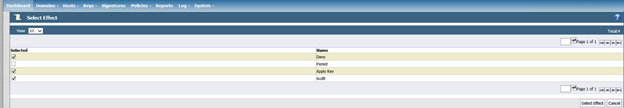 Mark Deny, Audit, and Apply Keys, and then click Select Effect.