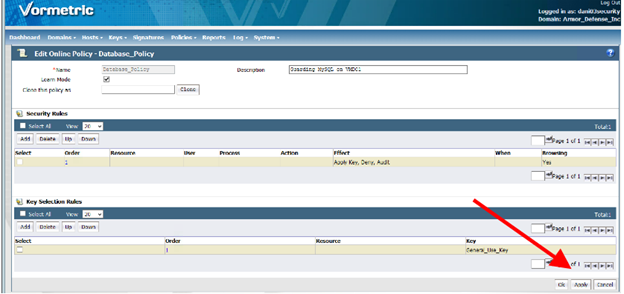 A Vormetric policy dictates what users or processes are allowed into a GuardPoint based on a list of rules and the order of those rules. Any attempts to access a Vormetric GuardPoint will be filtered by these rules in the policy. For example, a specific user or process cannot access a GuardPoint unless there a rule in a policy that specifically offers access. Without a specific rule for access, the attempt will be denied and logged.