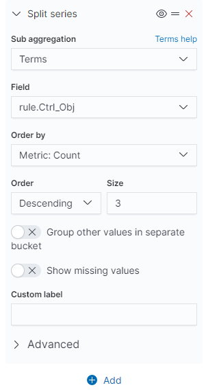 To add the second bucket, click the Add button underneath Buckets, making sure to select split series.