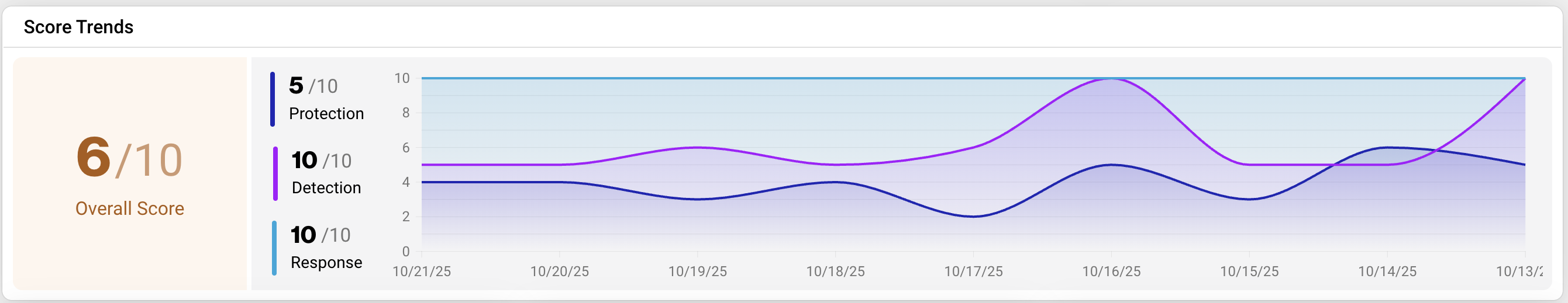 Use this visual to track score fluctuations and identify patterns in your security posture.