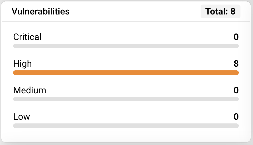 This widget shows the number of detected vulnerabilities from the latest weekly scan (performed every Sunday at 10:00 PM local server time). It includes: