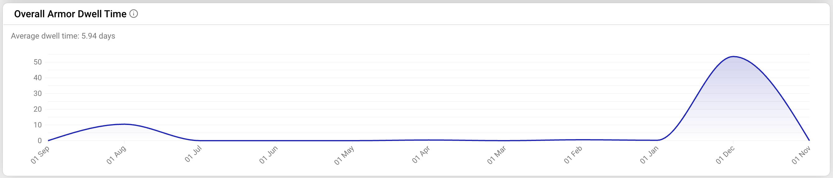 This graph shows the average time Armor takes to resolve a Security Incident, aggregated across all users.