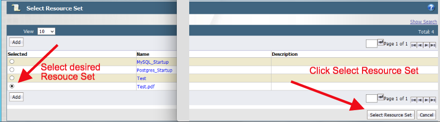 In the list of Resource Sets, mark the desired resource set, and then click Select Resource Set.
