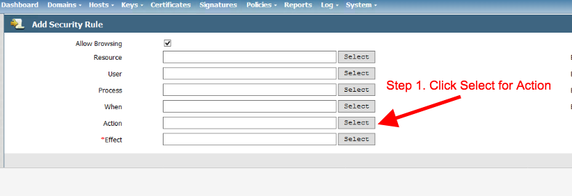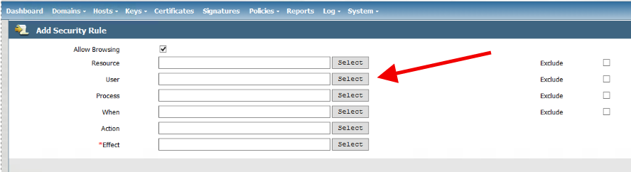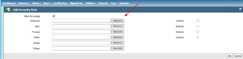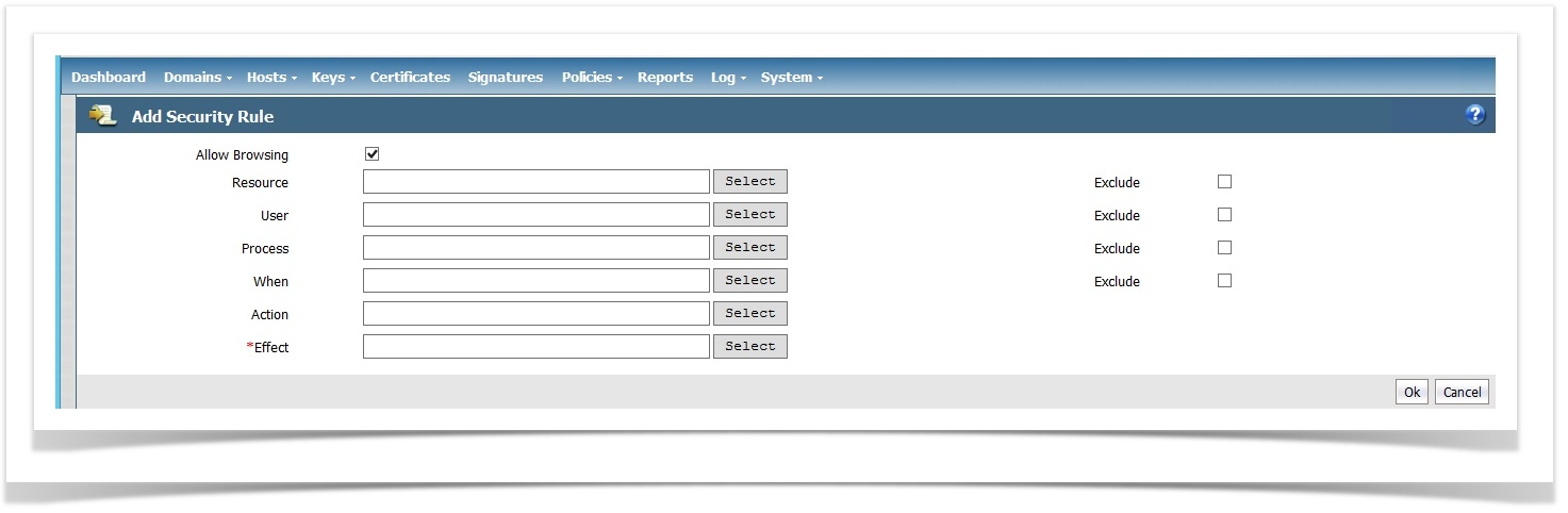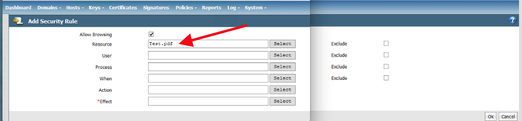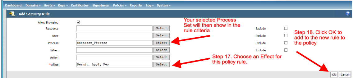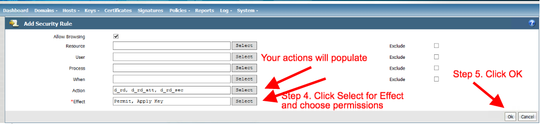 The Effect field will either permit or deny access, and additionally, determine if the rule should be audited or if the encryption key will be applied.
