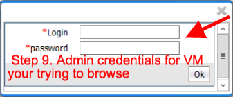 In the window that appears, enter the Admin credentials for the virtual machine that you want to remote browse, and then click Ok.