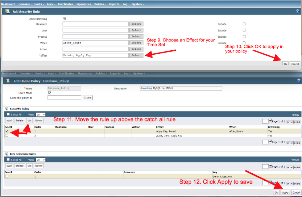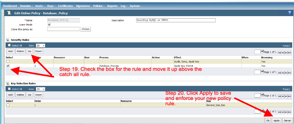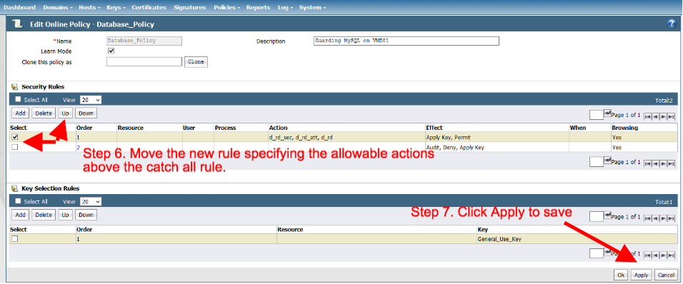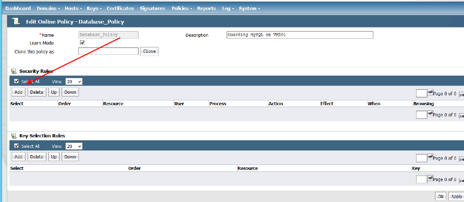 Click Apply to save your changes, and then click Ok to return to the list of policies.