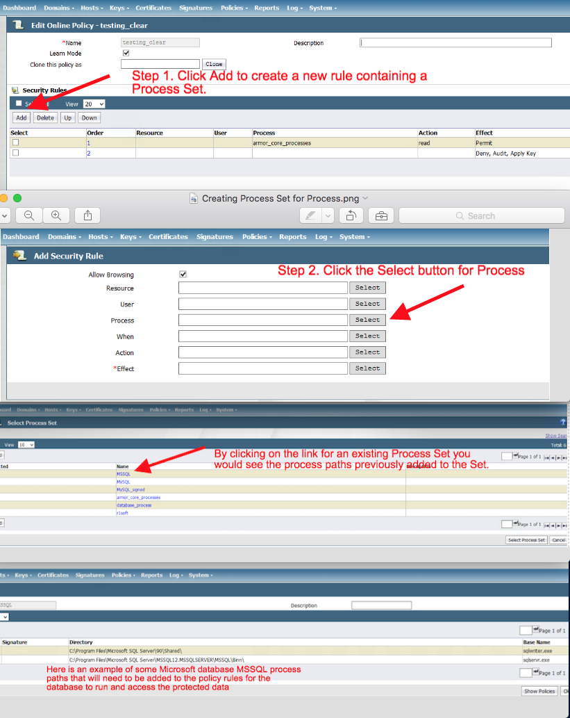 This topic explains how to create a Process Set. This option allows a path or paths and their executables to access a GuardPoint.