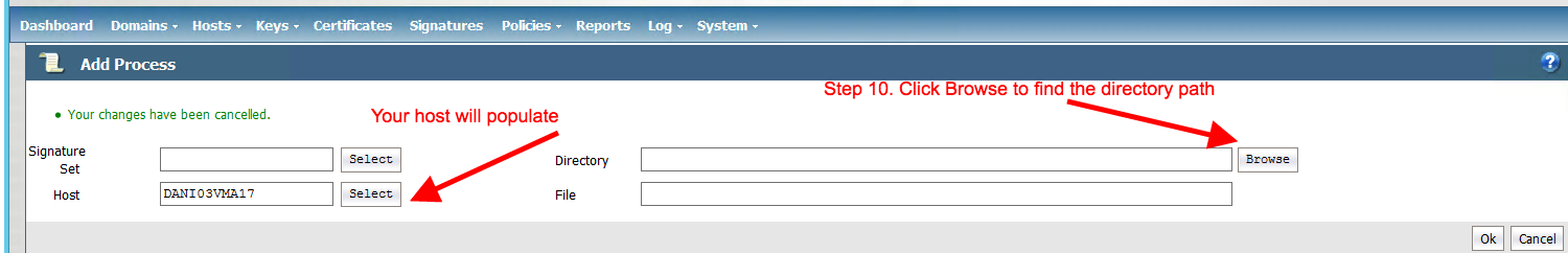 Note that the Host field is now populated. Click Browse to find the directory path.