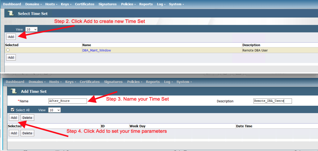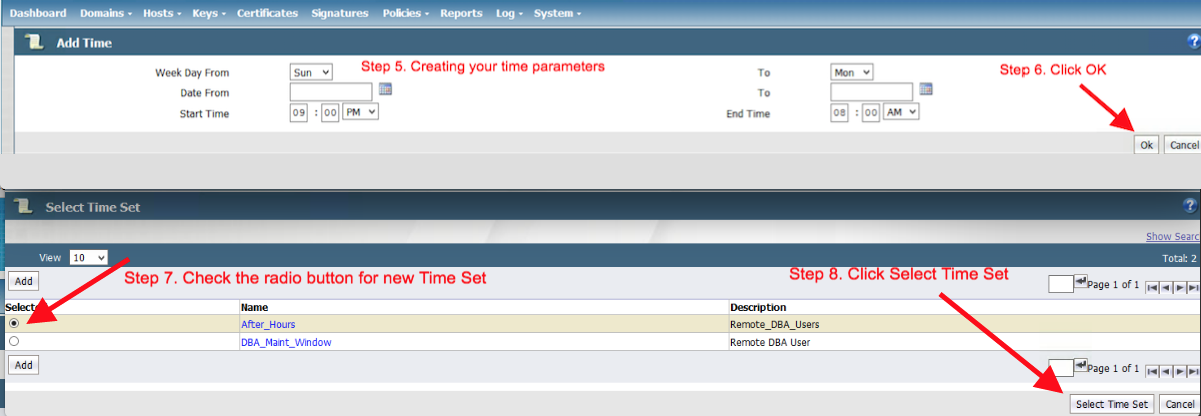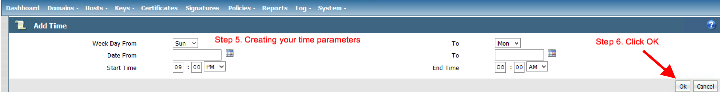 This topic explains how to create a Time Set. This option allows or denies access to a guarded folder based on a configured day and time.