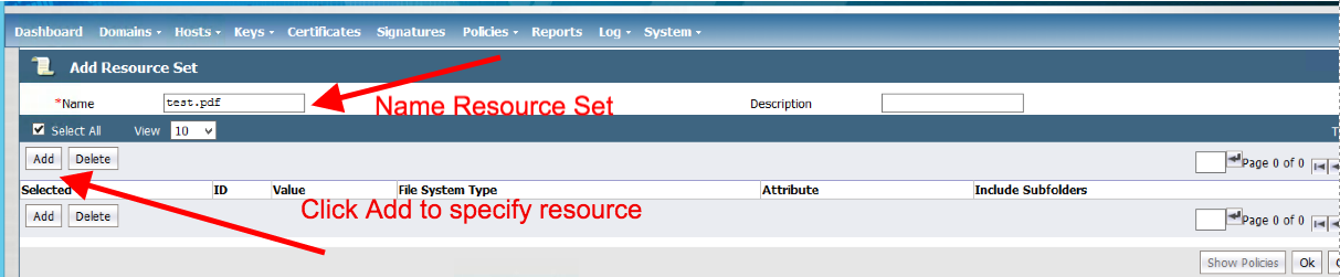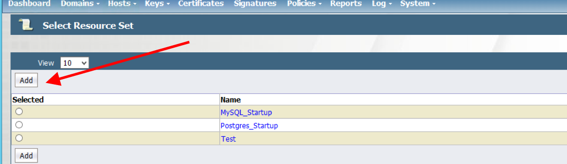 In the window that appears, click Add. This window also lists pre-existing resource sets.