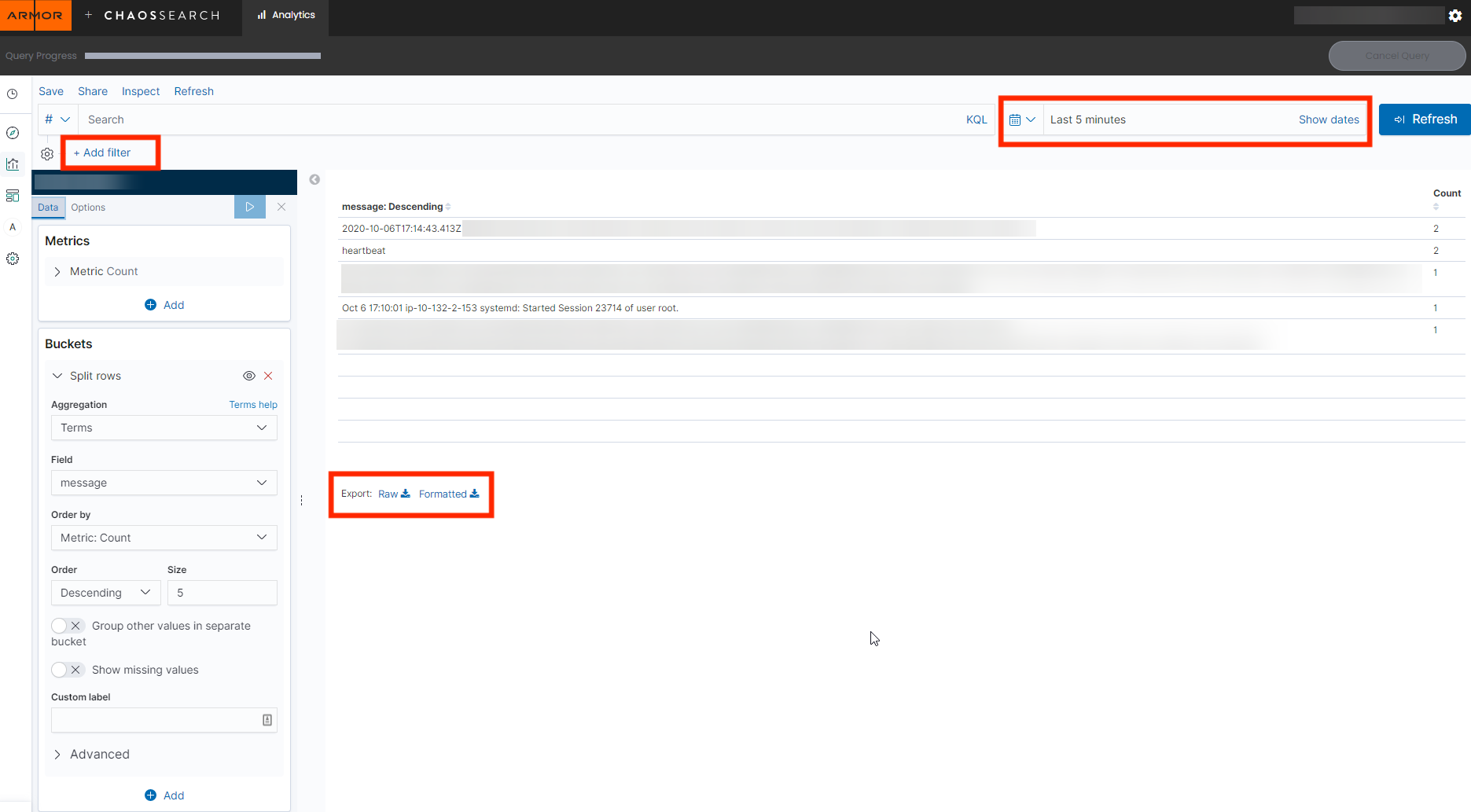 Exporting Data from Log Search