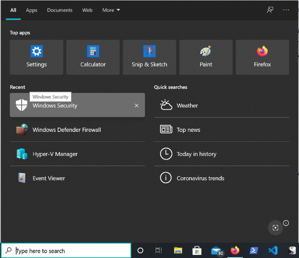 Open the Start menu and select the search field; you can type “Windows Security” or select the option on the menu. Click on the “Windows Security” app icon that pops up.