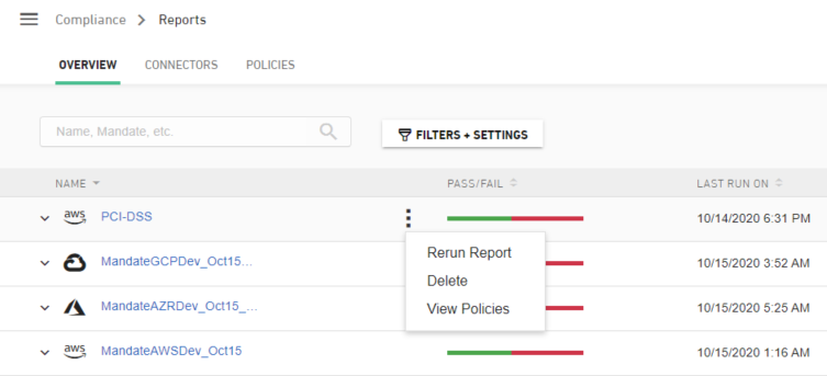 Users can Create a Report to begin using new connectors to evaluate environments. The cloud environment associated with the report will be scanned based on the mandate selected.