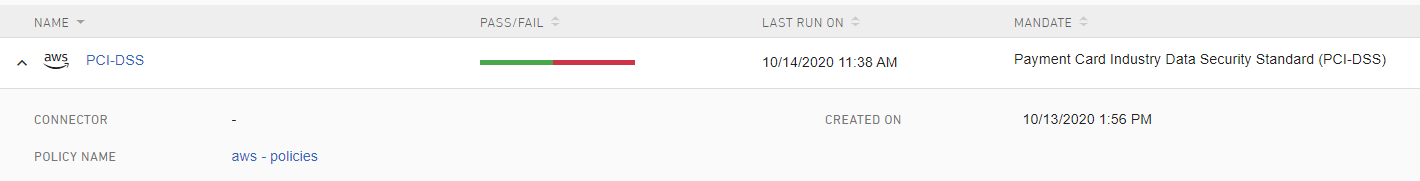 Users can click on the name of the report to view the report details page which contains the results of the environment scan. Depending on the mandate selected for that report, the details will be displayed and should look something like the below: