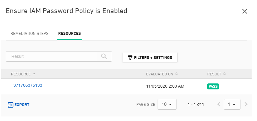 Pass/Fail rate with the number of resources associated.