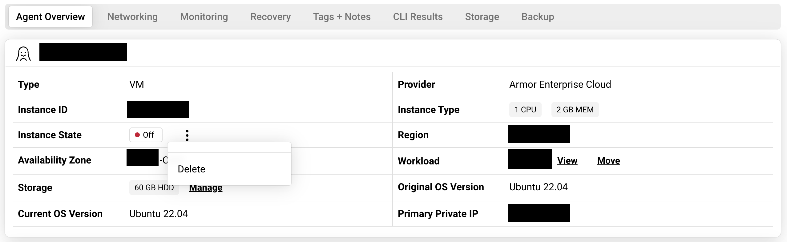 Provider | This entry displays Armor's private cloud, the provider for the instance. |