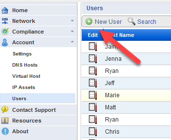 Above the Current User Listing, select New User.