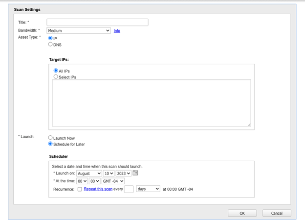 Enter the desired frequency of the scan in the Scheduler Window and click OK. Your scan has now been scheduled.